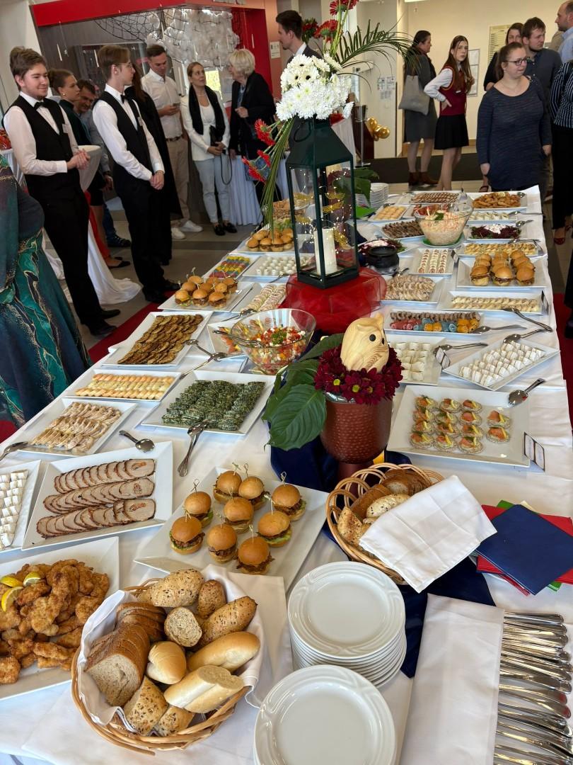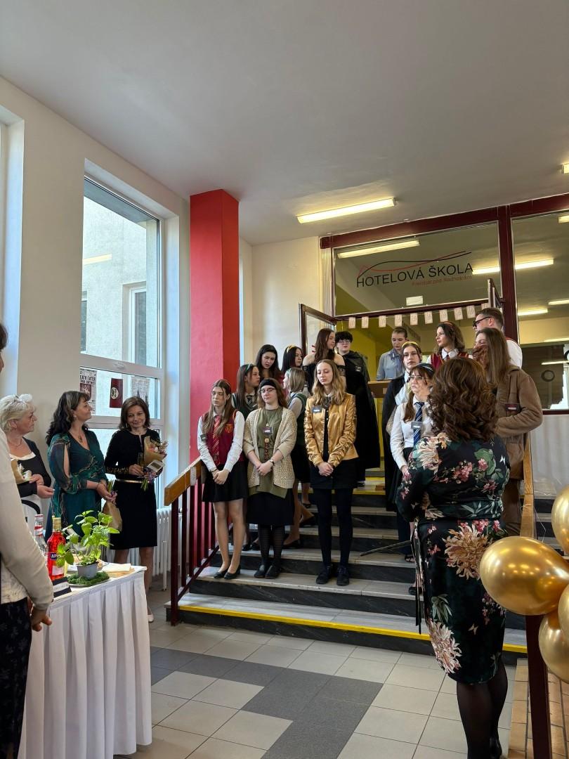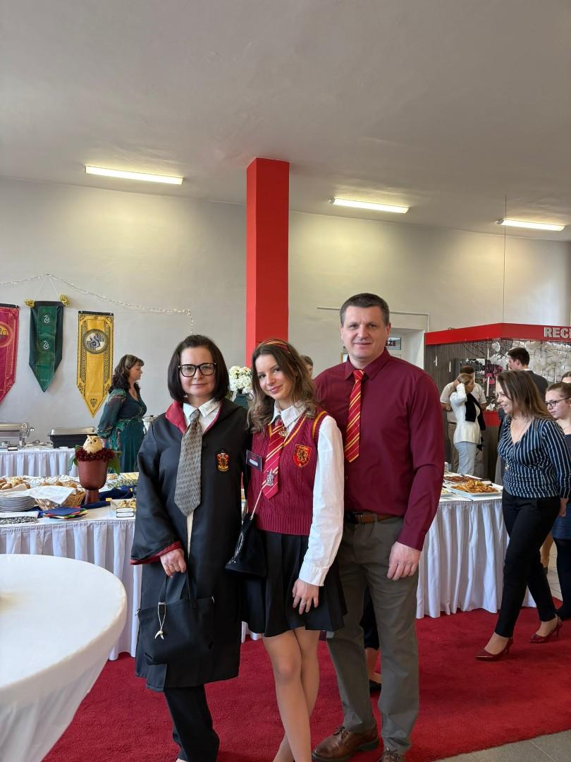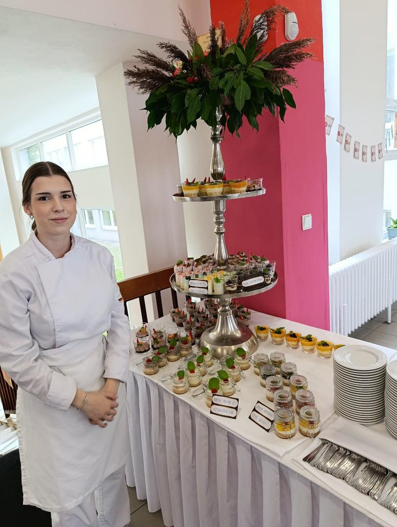 Ve dnech 8. a 9. dubna 2026 se chodby naší hotelové školy proměnily v tajuplné Bradavice. Třída H4, konkrétně skupina A1, zde skládala svou praktickou maturitní zkoušku, a nutno říct, že laťka byla nastavena proklatě vysoko. Téma „Bradavická hostina 4 kolejí“ nebylo jen o jídle, ale o kompletním zážitku, který by učaroval i samotnému Albusu Brumbálovi. Atmosféra, která brala dech, hned při vstupu do slavnostně vyzdobeného sálu hosty přivítala atmosféra Velké síně. Maturanti si dali záležet na každém detailu - symbolika kolejí. Stoly byly rozděleny podle barev – nechyběla neohrožená červená pro Nebelvír, ambiciózní zelená pro Zmijozel, moudrá modrá pro Havraspár a loajální žlutá pro Mrzimor. Dekorace levitující svíce a staré lexikony kouzel. Menu hodné čarodějů skupina A1 musela prokázat, že zvládá nejen špičkovou gastronomii, ale i kreativní storytelling. Každý chod reprezentoval jednu z kolejí a jejich typické vlastnosti. Praktická maturita není jen o výsledném talíři, ale o organizaci, komunikaci a preciznosti. Maturanti předvedli špičkový servis. Obsluha se pohybovala s lehkostí a grácií, jako by používala kouzlo Wingardium Leviosa. Kuchyně a obsluha fungovaly v dokonalé symbióze, což je základem každého úspěšného provozu. Při prezentaci pokrmů žáci prokázali hluboké znalosti surovin i technologických postupů. „Bylo fascinující sledovat, jak se studenti dokázali poprat s tak náročným tématem a přitom si zachovat chladnou hlavu a profesionální přístup,“ zaznělo z úst maturitní komise. Maturitní zkouška ukázala, že na naší škole nerostou jen budoucí hoteliéři a kuchaři, ale skuteční mistři svého řemesla, kteří se nebojí do své práce vložit kus srdce a fantazie. Gratulujeme celé skupině k úspěšnému zvládnutí této náročné zkoušky a přejeme, aby jejich další profesní cesta byla stejně magická jako tato hostina!