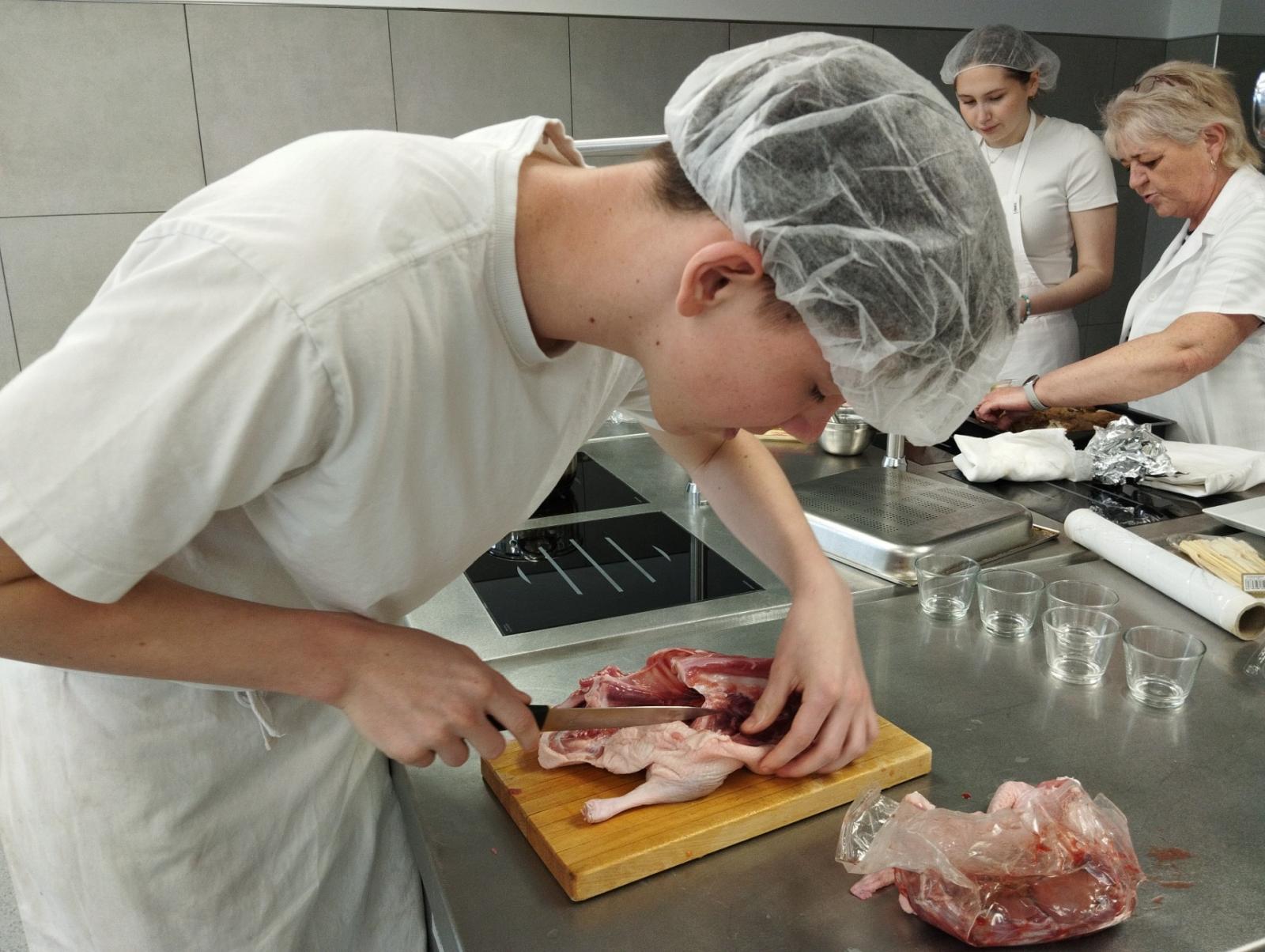 Dne 20. dubna 2024 se uskutečnil projektový den OP JAK žáků třídy H2 oboru hotelnictví, který byl zaměřen na téma Studená kuchyně – rautové výrobky. Tento den byl koncipován jako praktická výuka, během níž si žáci vyzkoušeli přípravu slavnostního rautového pohoštění. V praktické části dne vznikla pestrá škála studených pokrmů. Mezi připravovanými výrobky nechyběl anglická rostbíf, kuřecí roláda, kachní roláda, plněná vepřová panenka, různé kanapky a chuťovky, sladké moučníky s ovocem a další výrobky. Žáci se zaměřili nejen na chuť, ale také na estetiku servírování. Výsledné rautové stoly zaujaly barevností, nápaditostí i precizním zpracování. Projektový den přinesl žákům cenné zkušenosti z oblasti gastronomie. Vyzkoušeli si práci v týmu, organizaci času i rozdělení rolí. Zároveň si uvědomili, jak důležitá je pečlivost, kreativita a dodržování hygienických pravidel při přípravě pokrmů. Na závěr dne proběhla prezentace jednotlivých výrobků a jejich společné hodnocení.