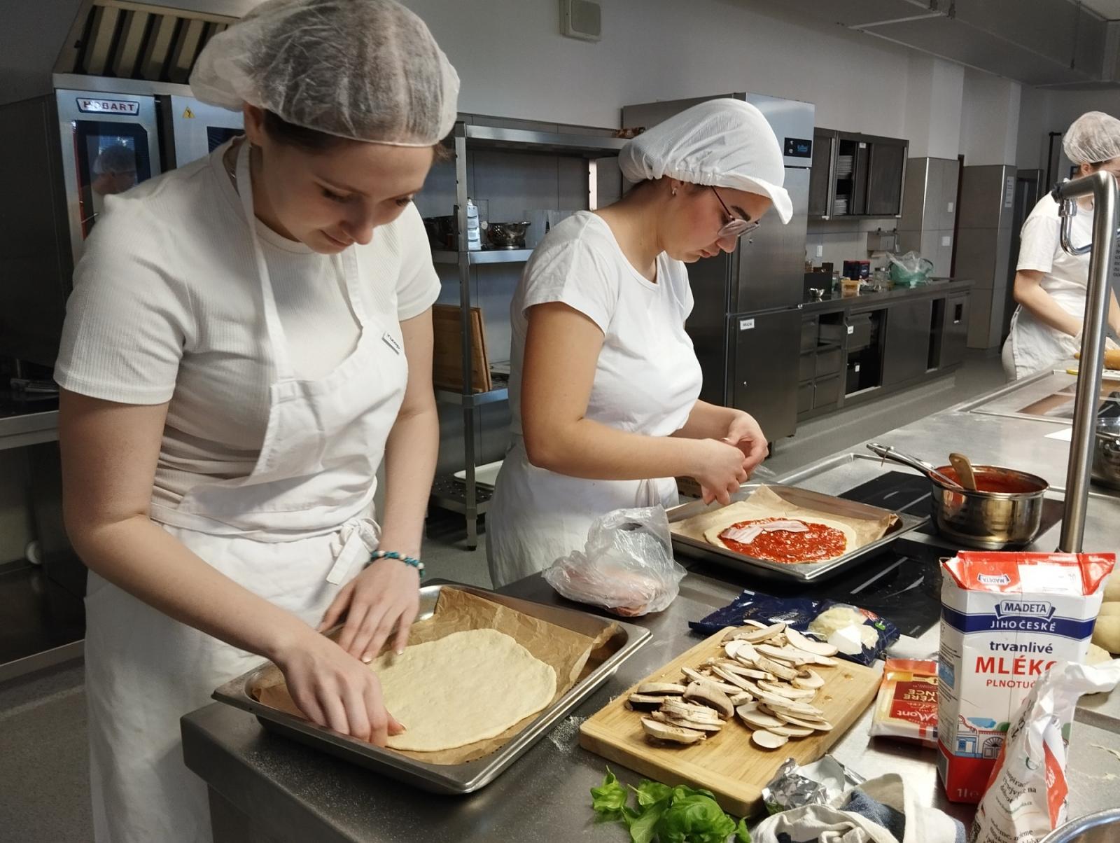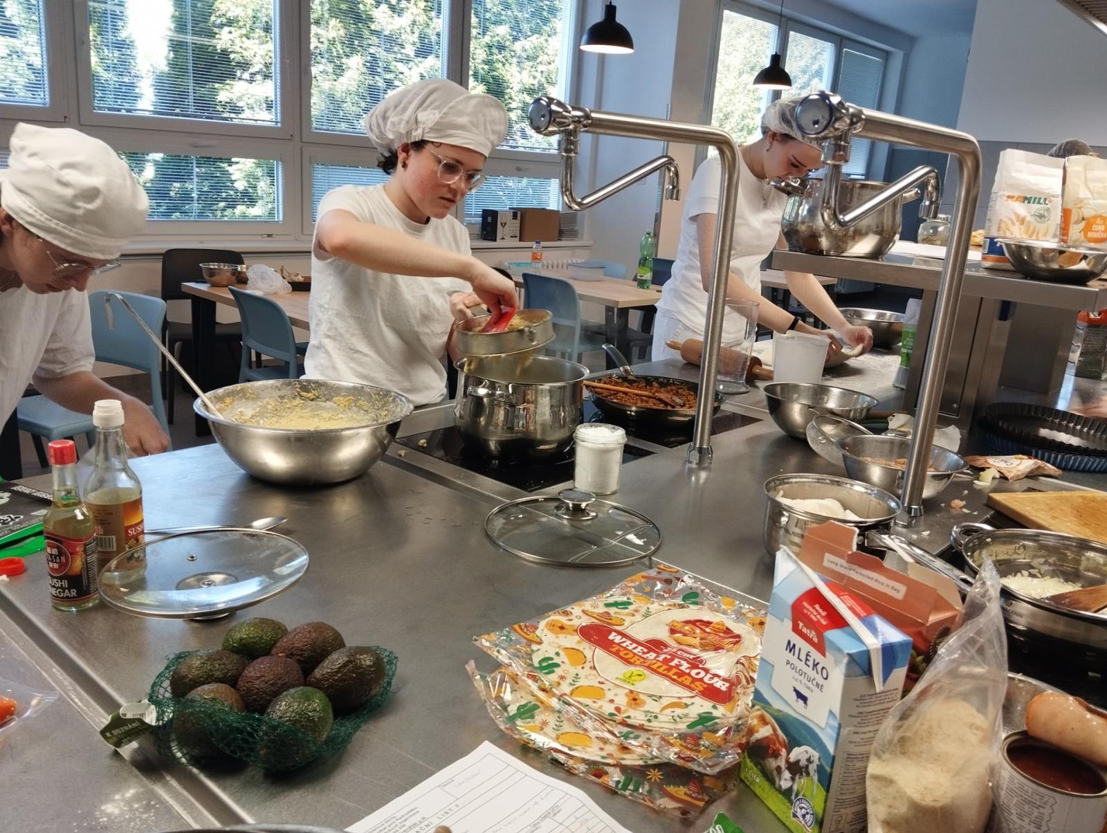 Dnešní gastronomie nezná hranic, dne 27. 4. 2026 si to na vlastní kůži vyzkoušeli žáci třídy H2 (15 žáků). V rámci projektového dne se školní cvičná kuchyně proměnila v mezinárodní kulinářské centrum. Žáci měli jedinečnou příležitost vyzkoušet si přípravu autentických pokrmů z různých koutů světa pod vedením zkušených odborníků.