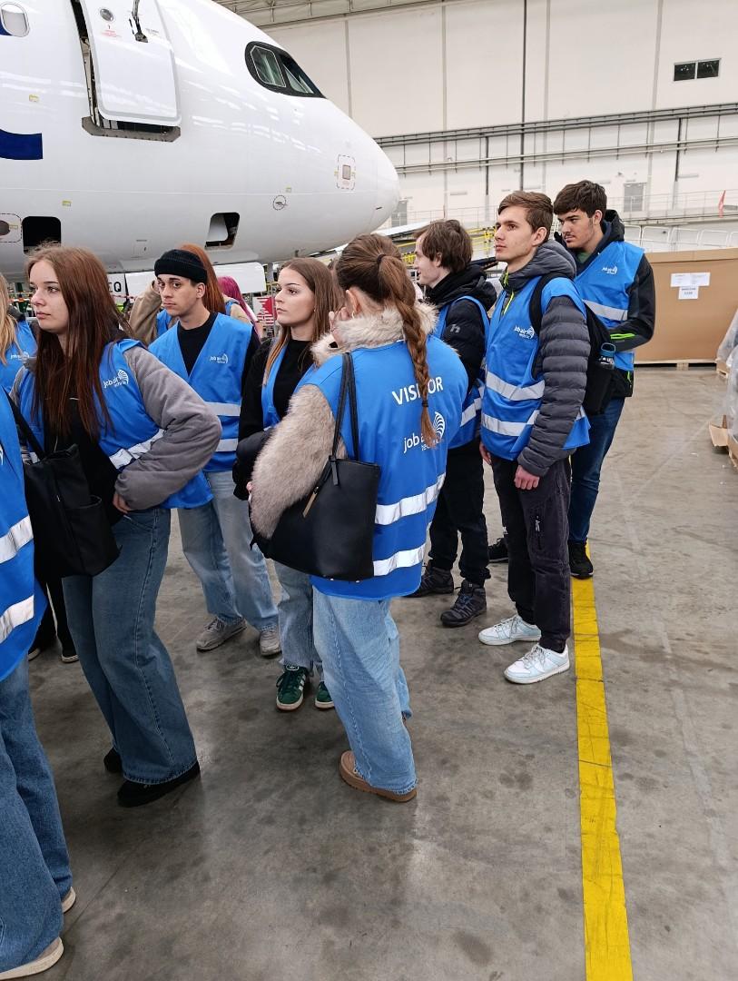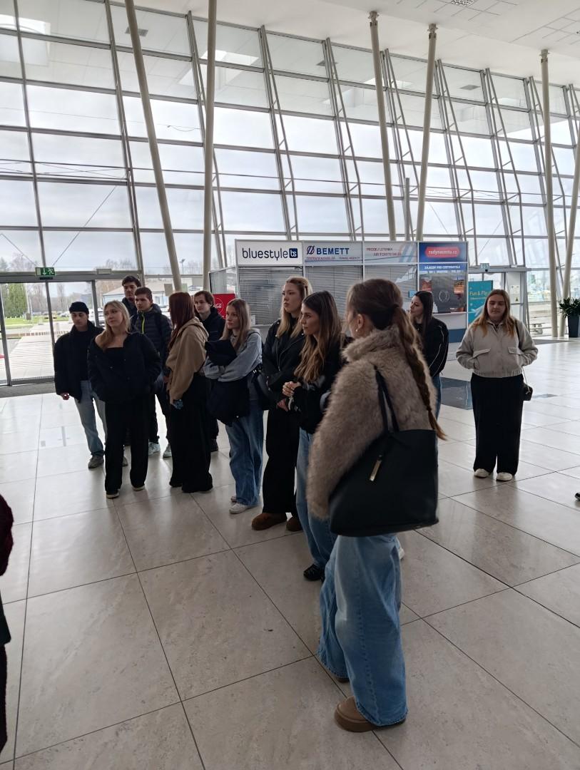 Dne 30. 3. 2026 se vydala třída CR3 v předmětu Technika cestovního ruchu pod vedením učitelky praxe Mgr. Jany Ranochové a třídní učitelky Vladimíry Mertové tam, kde cestovní ruch dostává reálné obrysy – na Letiště Leoše Janáčka Ostrava a do fascinujících prostor servisního zázemí JOB AIR Technik. Naše cesta začala v terminálu mošnovského letiště. Pro budoucí profesionály v turismu bylo zajímavé sledovat celý proces „za oponou“. Dozvěděli se detaily o logistice odbavení, jak funguje tok cestujících a zavazadel, bezpečnostních protokolů, co vše obnáší práce ostrahy a handlingu, specifikách regionálního letiště, jaké jsou plány rozvoje a kam všude se z Ostravy létá. Viděli jsme výcvik psů na vyhledávání omamných látek, který je postaven na neuvěřitelné hře a motivaci. Druhá část exkurze nás zavedla do gigantických hangárů společnosti JOB AIR Technik. Pokud si někdo myslel, že údržba letadla je jako výměna oleje u auta, byl rychle vyveden z omylu. Pohled na rozebrané Airbusy a Boeingy v rámci těžké údržby (tzv. C-check a D-check) byl dech beroucí. Měli jsme možnost vidět, odkryté motory a složité systémy avioniky, práci mechaniků, kteří se starají o to, aby byl každý let maximálně bezpečný, zázemí jedné z největších lakoven v Evropě. Jako studenti cestovního ruchu musí znát nejen cílové destinace, ale i cestu k nim. Pochopení toho, jak funguje letecká doprava a technické zázemí, dává obrovský náskok v praxi. Navíc, vidět takto špičkové technologie přímo v našem kraji je skvělou motivací pro naše budoucí kariéry. Děkujeme vedení letiště a týmu JOB AIR Technik za vřelé přijetí a za to, že nám umožnili nahlédnout do světa, který běžný cestující nikdy neuvidí!